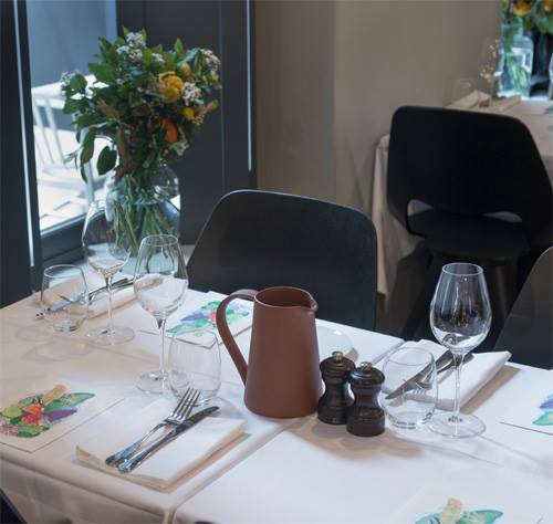 Above: Simplicity reigns in the dining room’s decor; the food takes center stage.