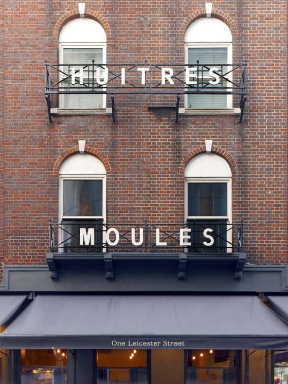 Above: The brick exterior; the hotel’s building once housed Manzi’s, a legendary London restaurant.