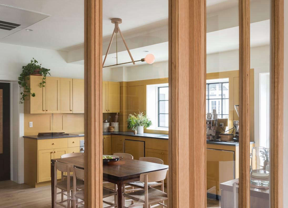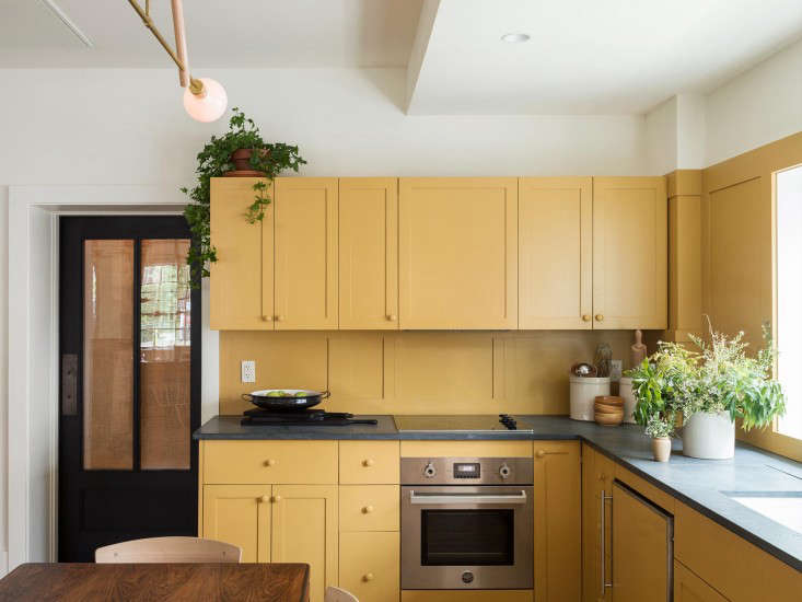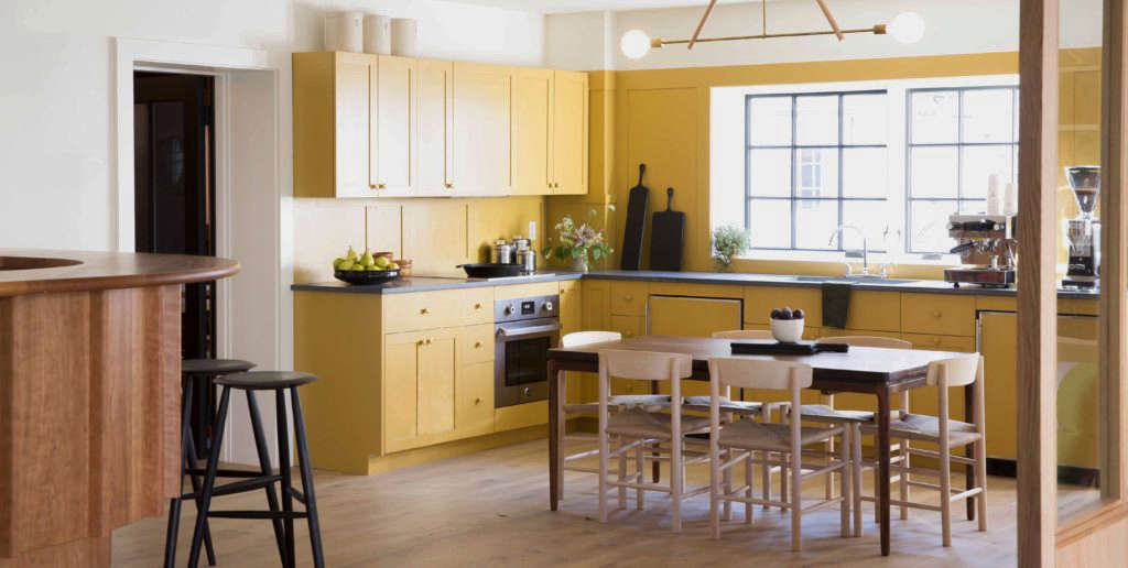 This past long weekend, I took the train out to Hudson, New York, to check out the Rivertown Lodge, by Brooklyn firm Workstead (it’s been on my design visit to-do list for a while now). A standout feature of the hotel lobby? The communal eat-in kitchen with turmeric-colored cabinets and a mix of high and low fixtures. We liked the look so much we went straight to the source for ideas on re-creating the look at home.