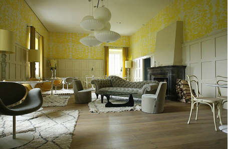 Designed by Ilse Crawford, the Das Kranzbach spa hotel in the Bavarian Alps features an unlikely mix of elements (Tyrolean chairs with George Nelson bubble lamps?). Somehow it all works.