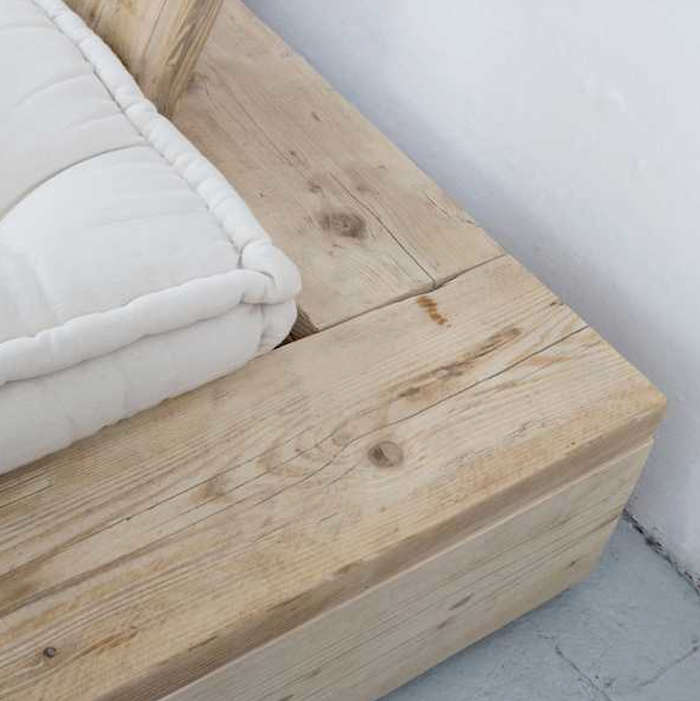 Katrin Arens has been designing furniture out of reclaimed, “abused wood” since 1998 out of her home, a converted 15th century mill in Bergamo, Italy. We recently noticed her handmade wood slatted bed frame and a mattress filled with virgin wool and cotton.