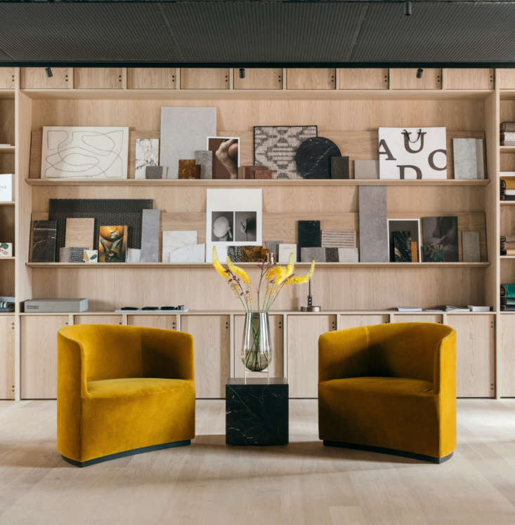 Above: The same Tearoom Club Chairs in a new guise in the Menu materials library. A who’s who of Scandinavian interiors companies contributed to the project: the wood floors are by Dinesen and the cabinets are by Kolon. Photograph by Mario Depicolzuane.