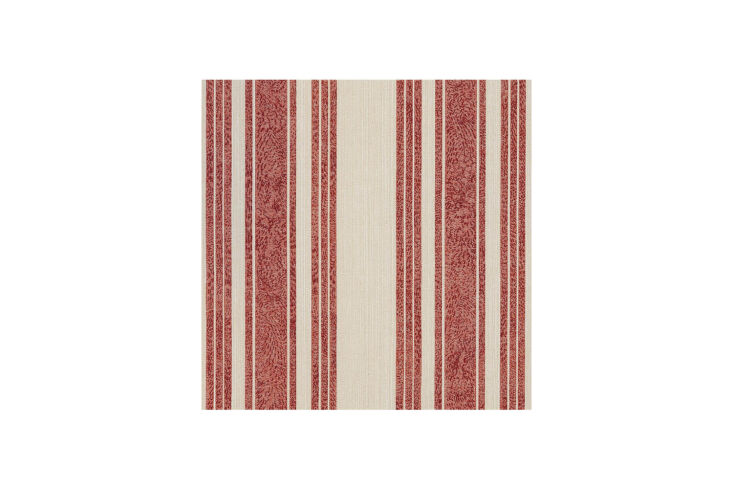 Above: At Fermoie, where many of the fabrics were sourced, the Tented Stripe Tent 001 Fabric is similar to the drapery textiles seen in the bedroom; $255 per yard.