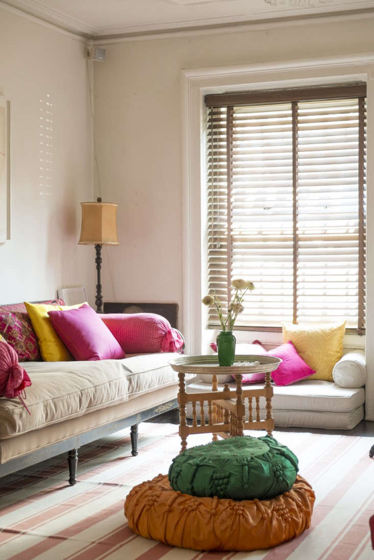 Alayne Patrick of New York cult boutique Layla produces her clothing, housewares, and jewelry in Jaipur and other parts of India. “I feel at home when I’m there,” she says–which explains how her Carroll Gardens, Brooklyn apartment came to feel like a colorful hideaway in Rajasthan.