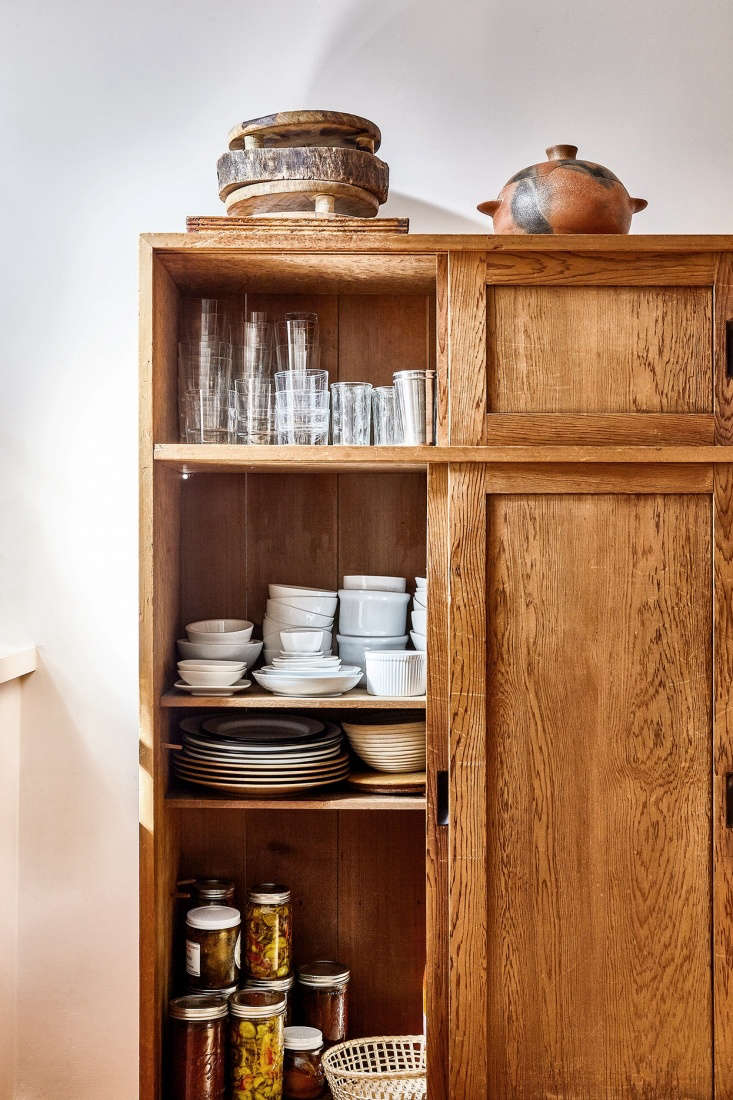 tansu chest holds additional tableware and jars of home-pickled vegetables.