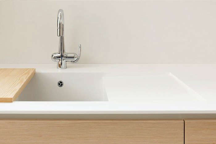 Above: The Softer Touch has an integrated sink and gooseneck chrome faucet. Kitzen often works with Swedish faucet line Tapwell.
