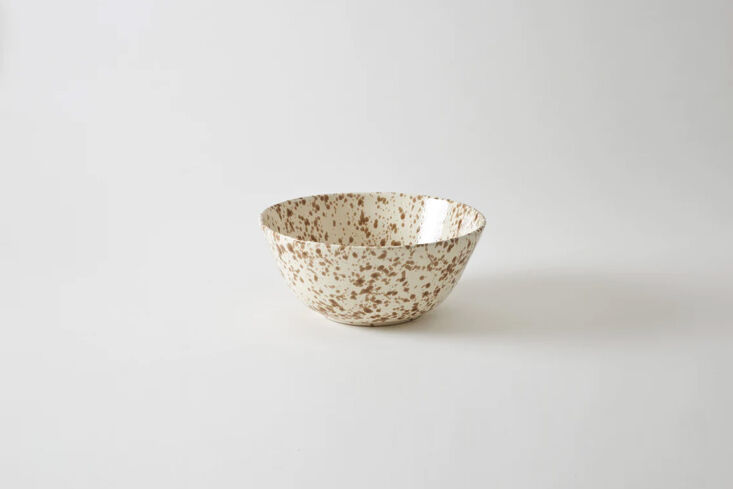 Above: The Brown on Cream 14.5-Inch Splatterware Serving Bowl is $150 at March.