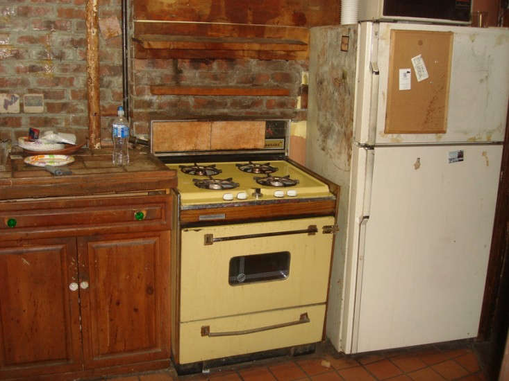 Above: Untouched for decades, the kitchen had broken-down appliances and faux brick walls. Its galley footprint lives on.