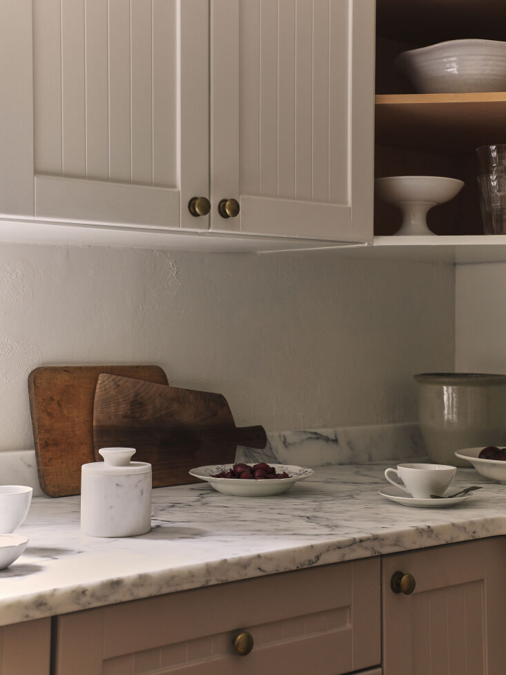 Above: Another easy upgrade: Brittany replaced the existing cabinet hardware with A57 Plain Knobs from Optimum Brasses in the UK: “I couldn’t find any sources here that had that same nice patina and handmade quality. It was a very easy process and they didn’t take long to come.” Unlacquered brass, she notes, “brings warm light to the room.”,
