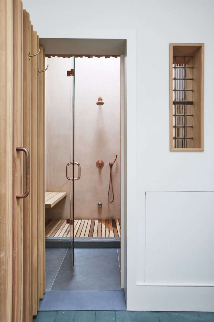 Above: There’s a steam shower with cedar fittings and Moroccan-style tadelakt walls. Read about tadelelakt in Remodeling 101.