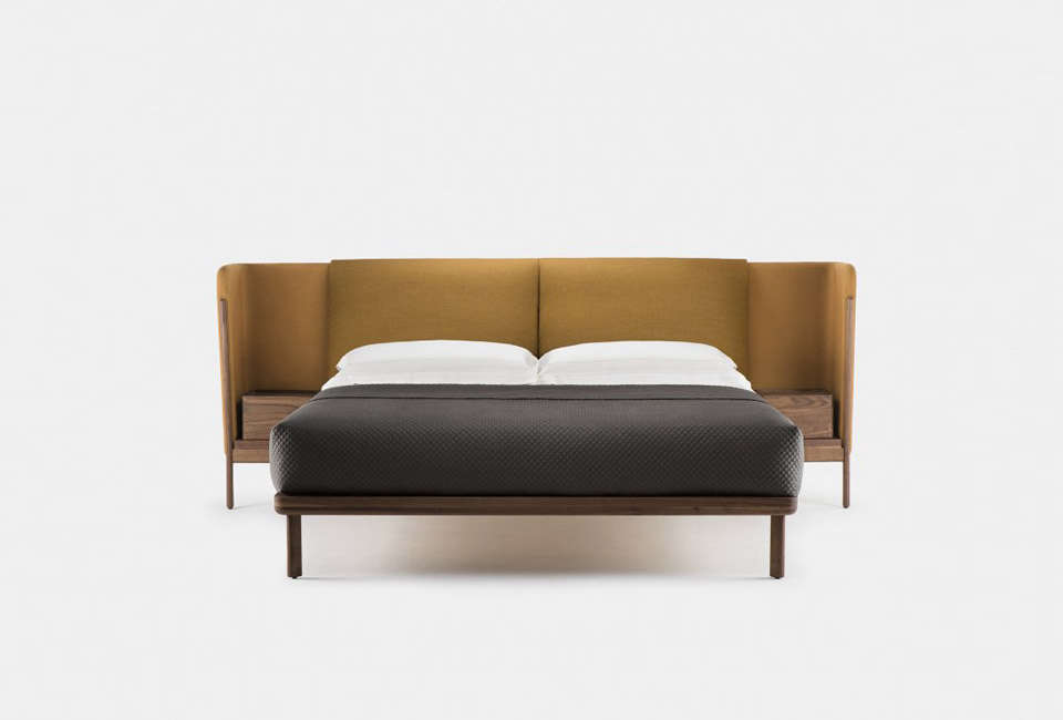 Above: The Nichetto 112 Low Dubois Bed is made of Danish oiled walnut with ochre canvas upholstery; available from De La Espada.