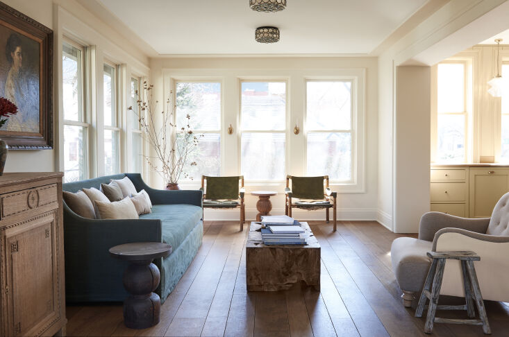 Their prairie-style house comes with history: It was designed by Florence Kenyon Hayden Rector, Ohio’s first female architect. While the brick exterior remains largely unchanged, many of the original details in the interior were lost after years of neglect. A renovation in the ’90s helped make it inhabitable again, but the cramped, dark kitchen didn’t function, as the new parents had envisioned, like the heart of the home: “Aside from the aesthetics not being a great fit for us, the space was isolated from the rest of the house,” says Greg. (Scroll to the end to see the before.) “It was difficult to keep an eye on the kids while making dinner [because] there was literally no room for them to be in the kitchen while we made a meal.”