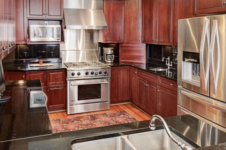 Above: The very ’90s kitchen featured cherry cabinets, huge appliances, and no space to congregate. “To take a room where formerly, only one person could occupy it comfortably, and turn it into a place where the whole family gathers is pretty special,” says Greg.