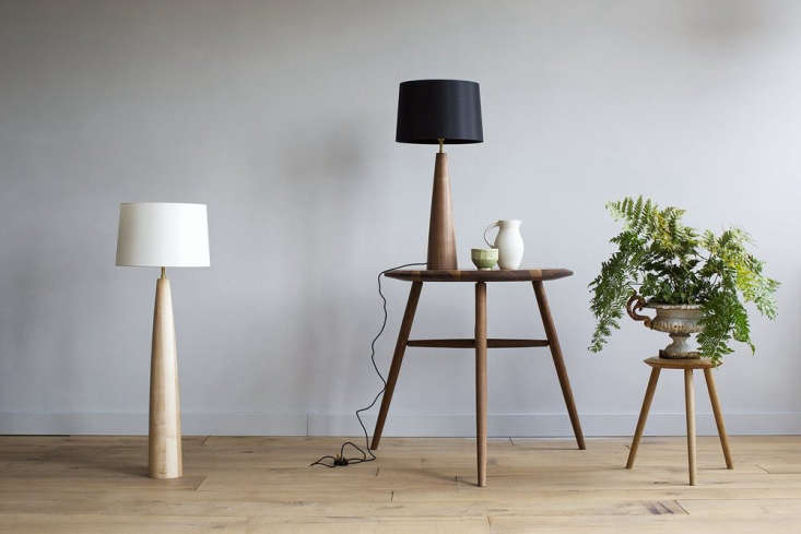 Above: Cassandra Ellis’s Sculpted Lamp in black walnut or English sycamore; £335 ($444) for the medium size (shown on the stool) and £450 ($598) for the large.