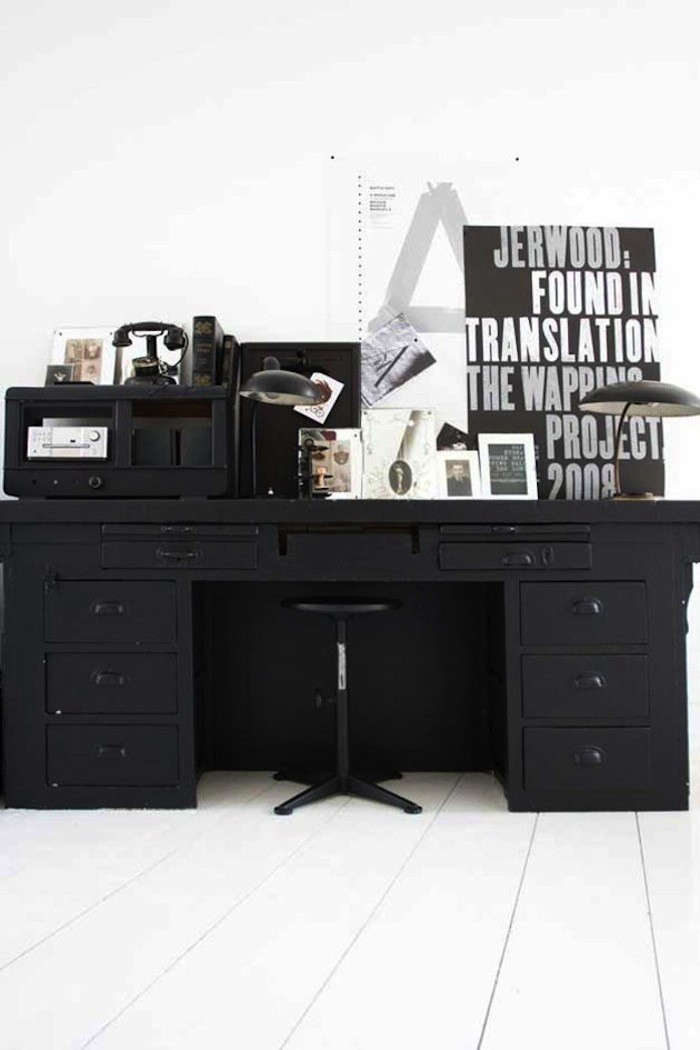 Above: An antique desk is given a second life with a coat of matte black paint.