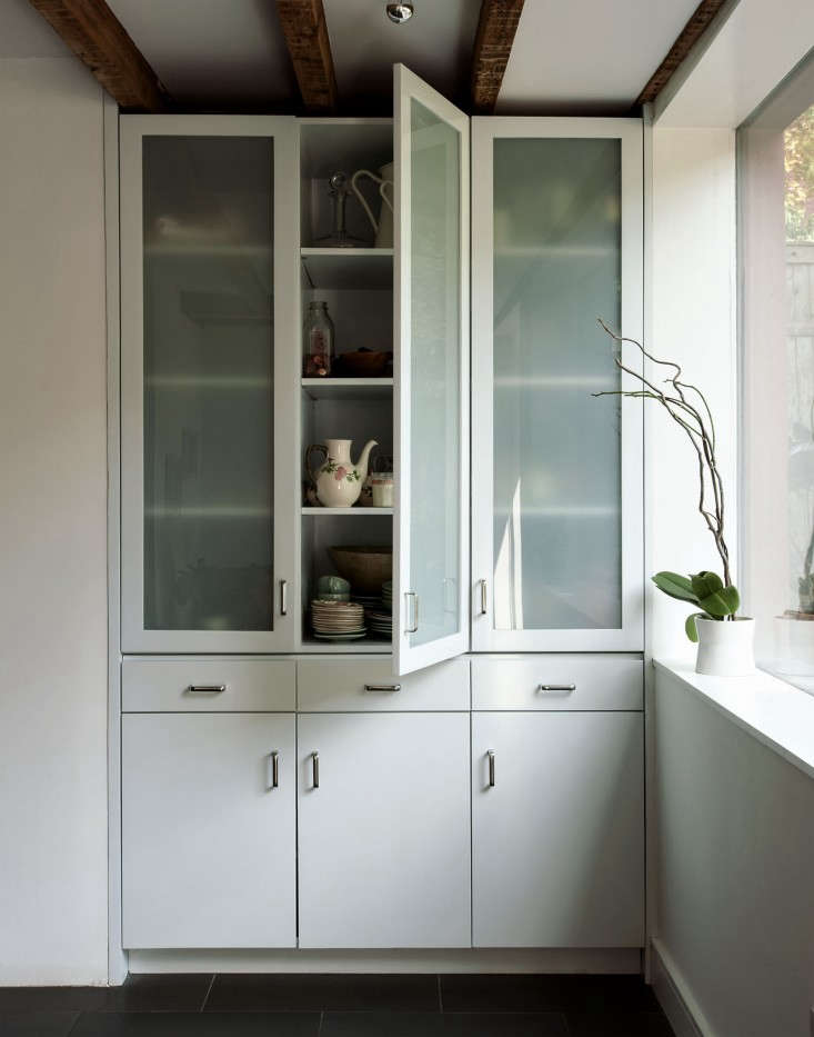 Above: A glass cabinet in Rehab Diary: A Hardworking Brooklyn Kitchen by Architect Annabelle Selldorf.