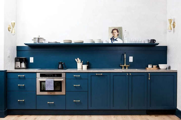 Of course you can easily paint your white- or light-colored cabinets in a darker, trendy shade. But if you’ve grown tired of dark gray (or the deep blue that was on trend a couple of years ago; see: Trend Alert: The Cult of the Blue Kitchen), never fear: you can, with some effort, return your cabinets to a lighter shade. The key is in the primer: “Consider tinting the primer to match the final color,” suggests painter Albert Ridge in How to Paint Kitchen Cabinets: 5 Tips from a Master Painter. “If your color transition is extreme, you might instead add a coat of underbody, such as Fresh Start, a thicker, less transparent primer that hides more (and can also be tinted). You can have the tinting done in the paint store; I request 75 percent of the final color, so it’s lighter but close.”