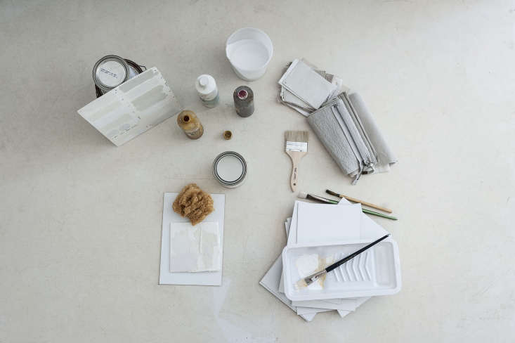 Above: An arsenal of tools and brushes in DIY Paint: Designer Michaela Scherrer Mixes Her Own Shades of White. Photograph by Matthew Williams.