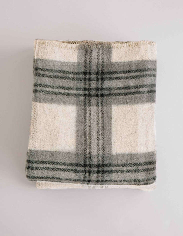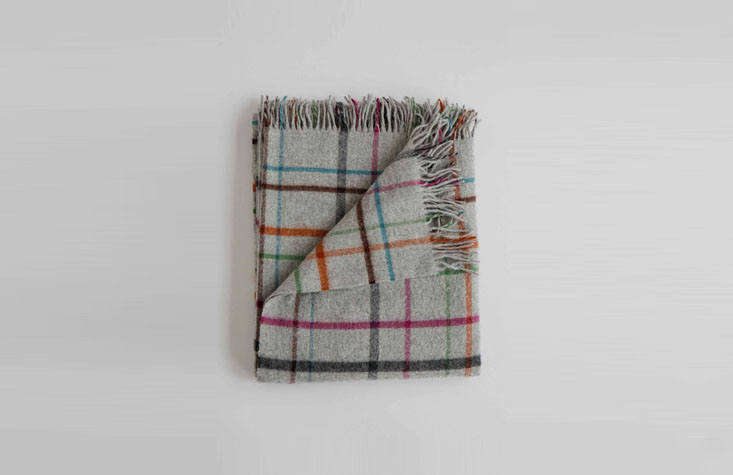 Above: The Patterned Merino Throw ($242) offers a sense of nostalgia, with bright windowpane and plaid patterns. Shown here: multicolor Fog Plaid.