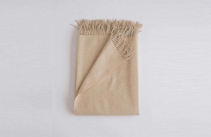 Above: The “sophisticated and refined” Alpaca Throw ($407), available in six neutral colorways including Sand, shown.