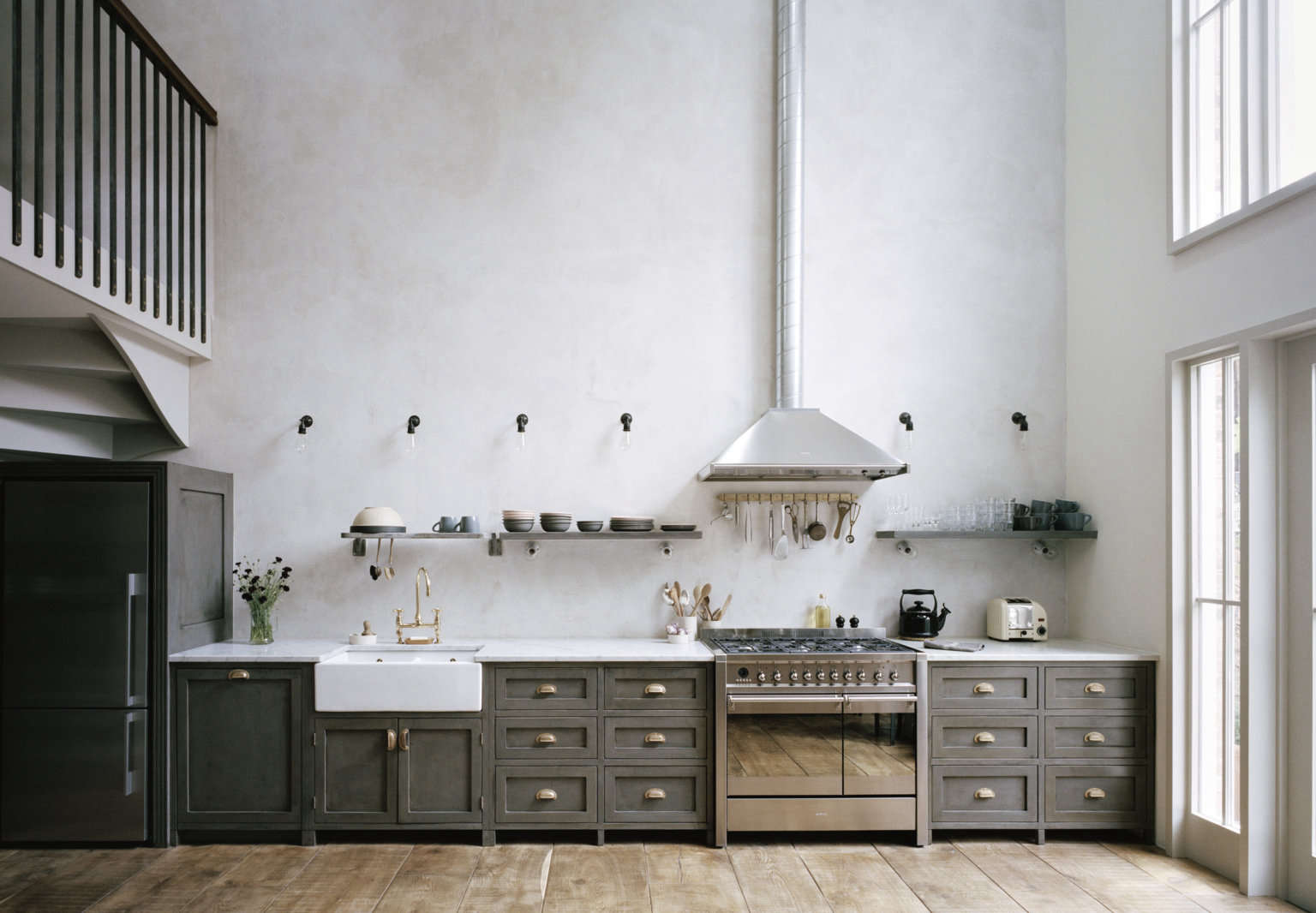 Mark is a brand loyalist: he sources kitchenware for himself and clients from the Conran Shop, kitchen sinks from Shaws, faucets from Aston Matthews, and simple sconces from Urban Cottage Industries.