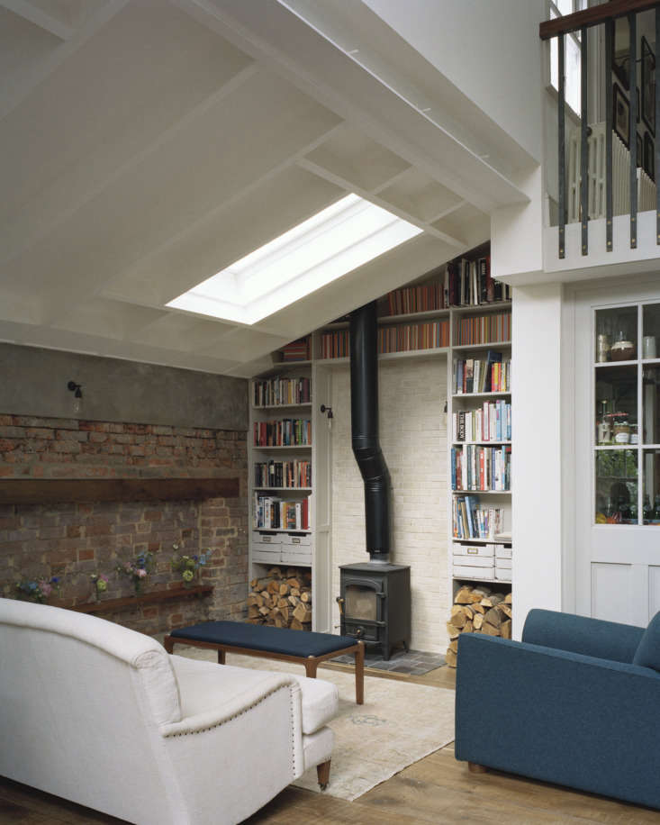 Mark lives with his partner, Abi Leland, who works in the music business, and their children, James, 10, and Olive, 5, in a three-story Victorian row house in Highgate that had been converted into a trio of apartments in the sixties. And though he says he never wanted to be a serial remodeler, the place has undergone three progressions since they bought the garden floor nearly 10 years ago. Initially, they cleared space in their one-bedroom flat by turning the bathroom into James’s room (“we put a bath in our room to make it work.”). Along the way they petitioned to add an extension onto the side yard, and when permission was granted three years later, they added a new living and dining area to the setup. Then, in 2015, they bought the upstairs flat and rented it out while searching for the loft Abi envisioned as their next step.