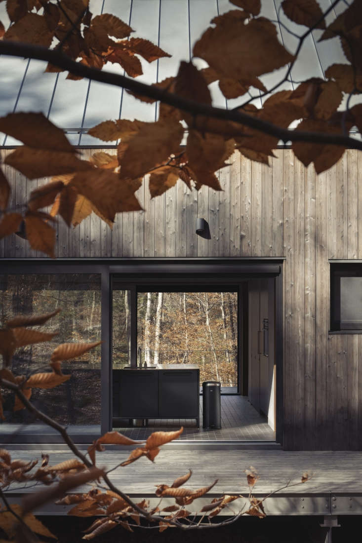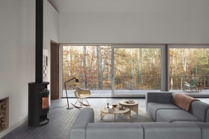 They wanted foremost to build a structure with as little impact as possible, and towards that end decided to follow Passive House standards, a set of stringent rules for creating an ultra-efficient, air-tight dwelling that supplies most of its own energy via solar panels. To save on costs and stay on top of an ambitious construction schedule, the couple also decided to act in tandem as their own general contractor. It took them six months to build the house and another six months to finish the interior. Join us for a visit into the woods.