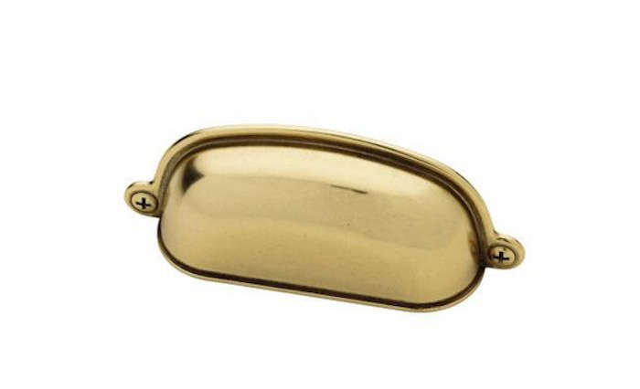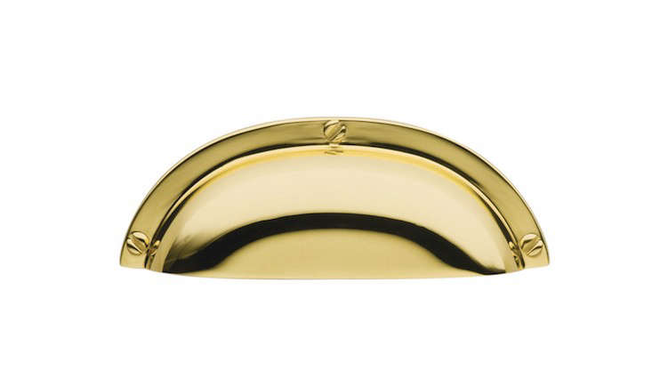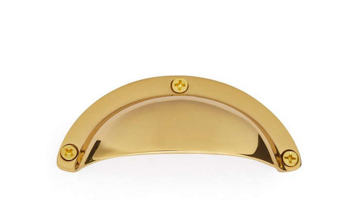 Above: The Cliffside Solid Brass Cup Pull in polished brass is $17.20 from Hardware Hut.