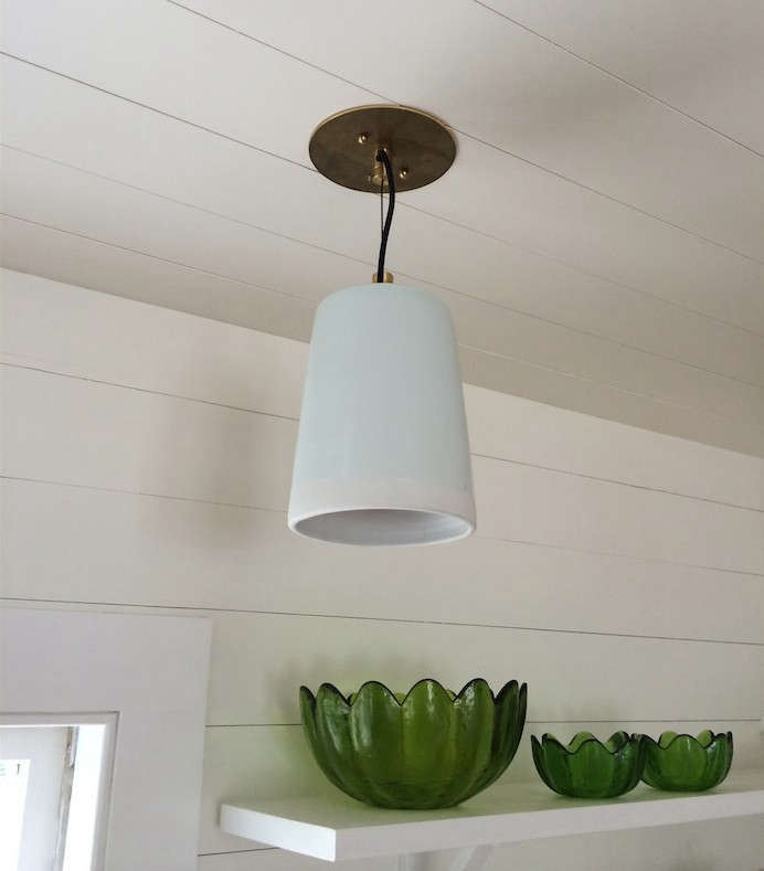 Above: “The pendant lights are by my friend Michele Quan of MQuan who makes beautiful ceramics and jewelry,” says Lisa. “The lamps are celadon-dipped porcelain and the metal finishes are brass.” Quan also makes Ceramic Bells Inspired by Japanese Temples.