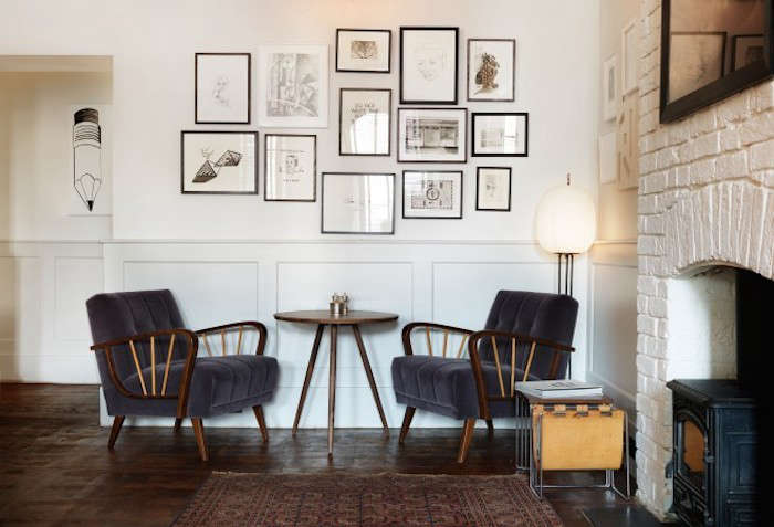 We’ve been longtime fans of High Road House, a London hotel and members’ club (it’s part of the Soho House group), so when we noticed that it had recently been overhauled by Alexander Waterworth Interiors, we took note. Located on the site of the historic Fouberts Hotel, in Chiswick, West London, High Road House opened in 2006 with a whitewashed, color-accented interior by Ilse Crawford. The team at Alexander Waterworth has taken it in a moodier direction, with a midcentury vibe and an art collection featuring works by London artists.