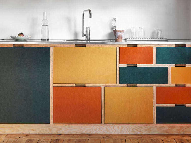 Above: A variation on the theme: In this kitchen by Swedish firm Bedow Design Studio, U-shape gaps are cut out of a pine plywood frame—not the door fronts—to create a “pull” via the gap. The colorful cabinet doors are meant to be rotated seasonally. (See more in Kitchen of the Week: A Modular Kitchen in Stockholm with a Seasonal (and Swappable) Palette.) Photograph by Erik Undehn.