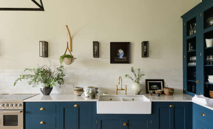 When the new owners bought the historic property, they were intent on turning it into a warm family home without losing the grand proportions—including in the kitchen. To this end, they kept the oversized Gothic windows, the weathered limestone floors, an original fireplace, and the space’s dramatic loftiness. Then they tapped deVOL to supply them with their Classic English Kitchen cabinets. The result is a large, airy space that manages to be both fit for family life and respectful of its architectural pedigree.