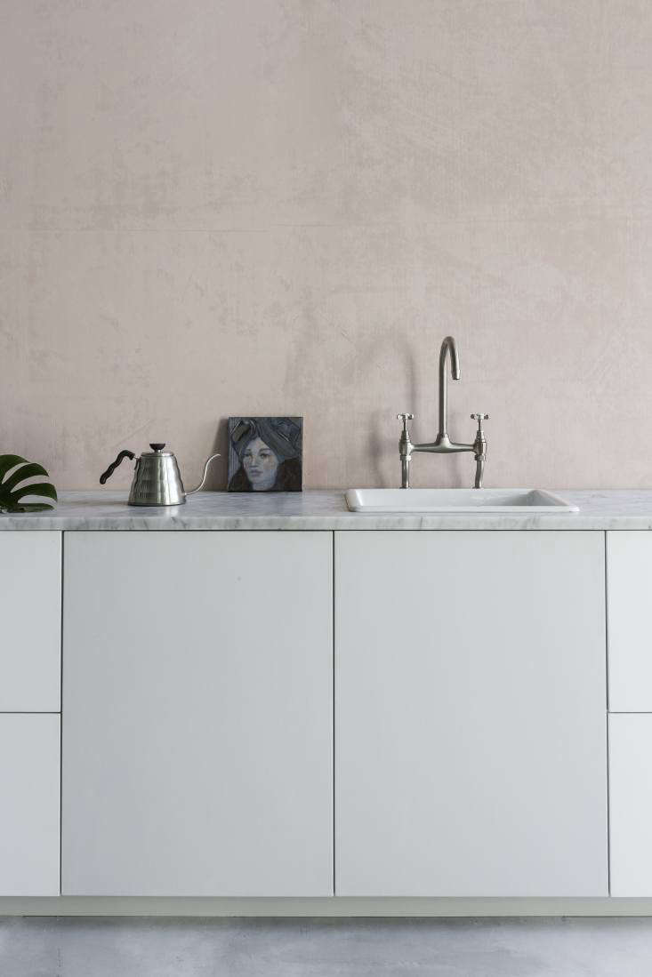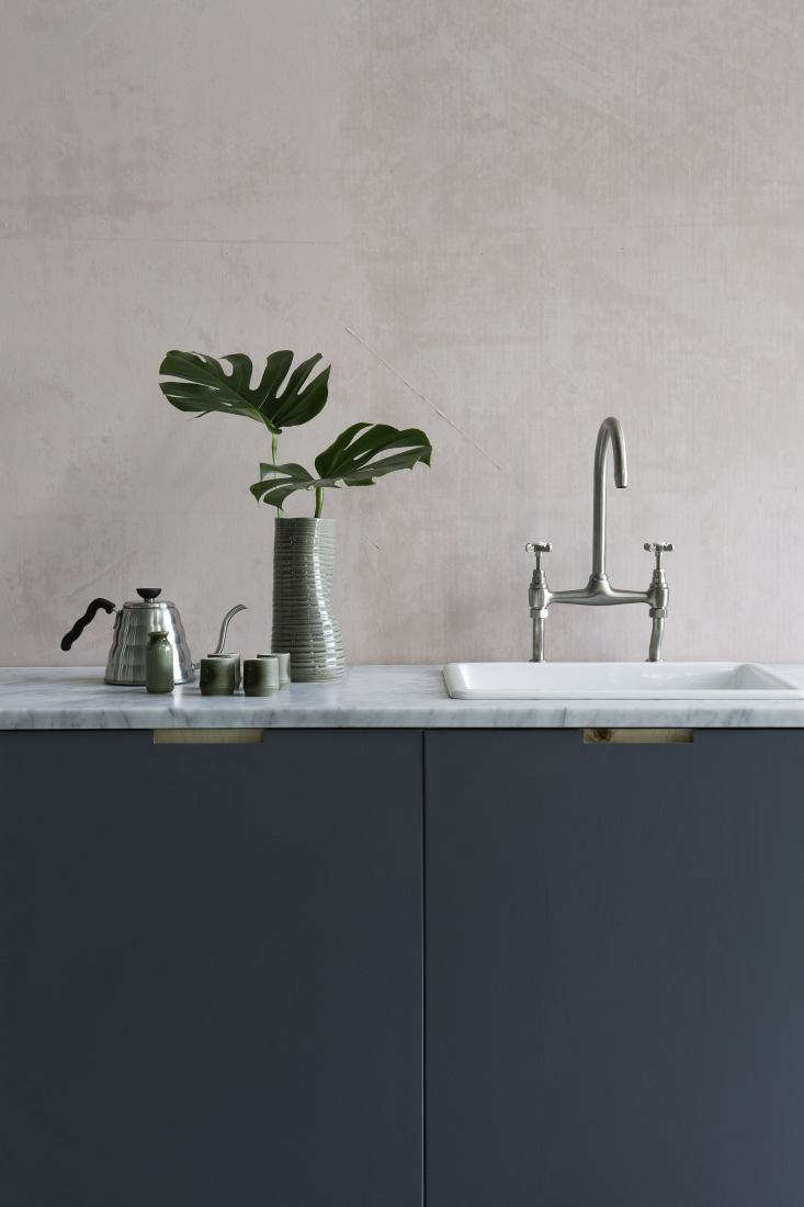 The couple hadn’t planned to offer worktops, but, by popular demand, they have started to supply metal-topped birch ply surfaces that need to be cut on site by a kitchen fitter. Brass, zinc, stainless steel, and copper are all options. “We love metals because they are living materials that patinate over time and respond to how you use them. They take imprints of you, and you end up with something completely unique.”