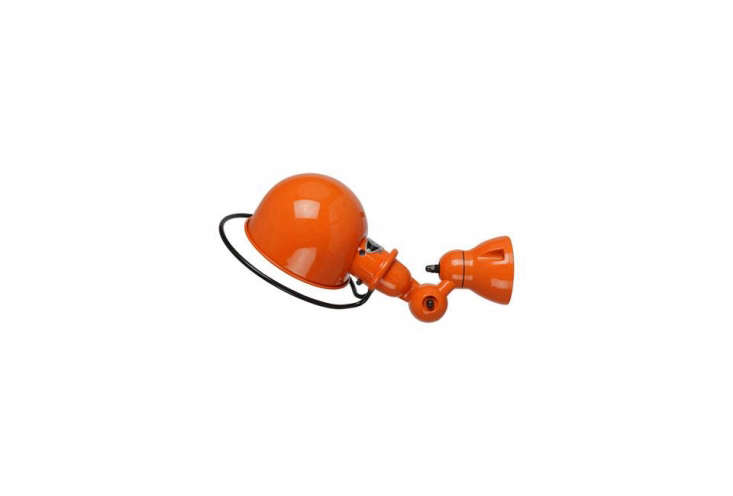 Above: A pair of Jielde Loft Wall Sconces flank the bed. They’re $502 for the glossy orange finish at Horne.