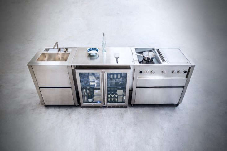 Above: Italian company Alpes Inox makes freestanding stainless steel kitchen systems that consist of ranges and cabinets on wheels, gas burner counters, oven/beverage refrigerator combo, and more. For more, see Race-Car-Style Appliances for Compact Kitchens.,