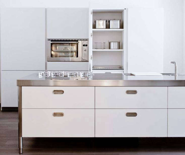 Above: Copenhagen company Vipp designs a line of kitchen modules—a wall module (shown), island module, and tall modules—that can be customized with a Miele dishwasher, oven, refrigerator, refrigerator/freezer combo, or a KFN freezer. See a US project designed with Vipp modules in Kitchen of the Week: A Vipp Modular Kitchen in the Hamptons.
